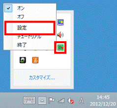 - アルファベットのPのアイコン(PointGrab ハンドジャスチャーコントロール)を右クリックし、表示される一覧から「設定」をクリックします。