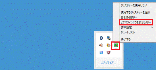 - アルファベットのPのアイコン(PointGrab Hand Gesture Control Settings)を右クリックし、表示される一覧から「ビデオウィンドウを表示しない」をクリックします。