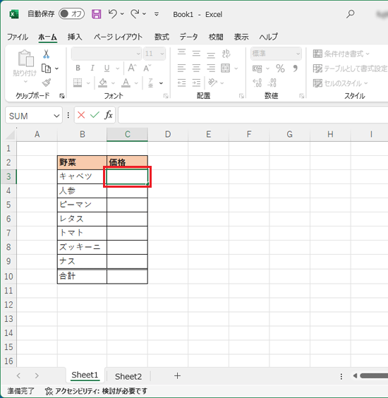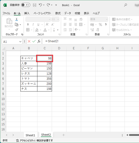 (「Sheet2」の「C2」セルを参照先に指定した場合) - 【Enter】キーを押します。