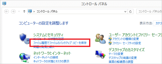- 「ファイル履歴でファイルのバックアップコピーを保存」をクリックします。