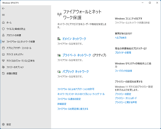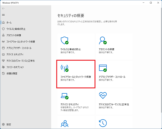 - 「ファイアウォールとネットワーク保護」がと表示されます。