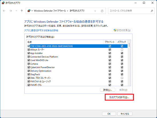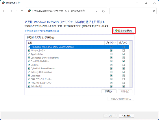 - 「 ファイアウォールによるアプリケーションの許可」をクリックします。