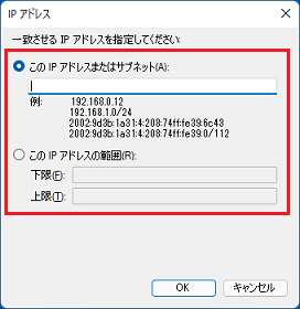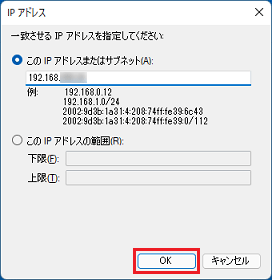 通信を許可したいIPアドレスまたはサブネットを入力します。 - この IP アドレスの範囲