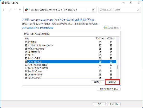 次の手順で、「許可されたアプリ」の一覧からアプリを削除します。