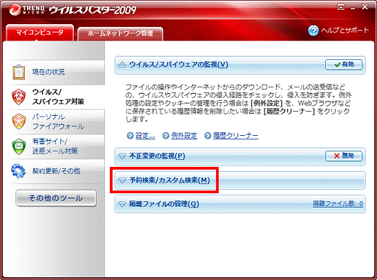 詳しい内容については、ウイルスバスター2009 ヘルプをご覧ください。