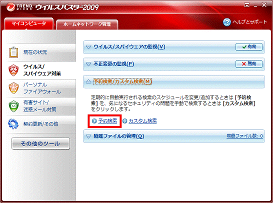 [ウイルスバスター2009] ウイルスやスパイウェアをチェックする方法を教えてください。