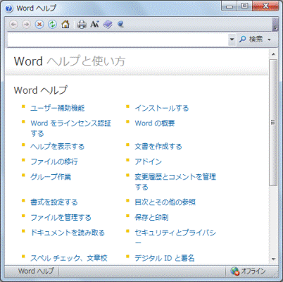 【F1】キーを押しても、「Word ヘルプ」を表示できます。 - 「Word ヘルプ」が表示されます。