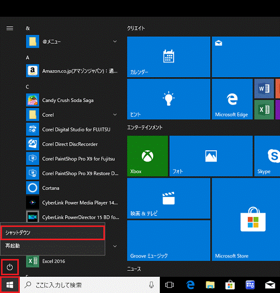 セーフモードから通常の起動に戻すには、「スタート」ボタン→「電源」→「シャットダウン」の順にクリックして、電源を切ります。