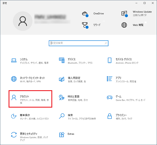 「アカウント」をクリックします。