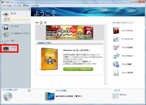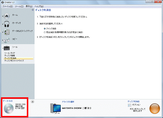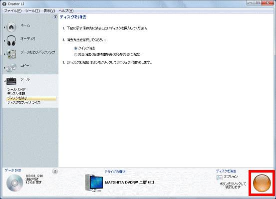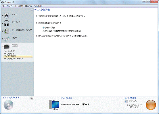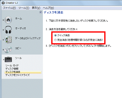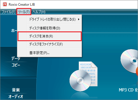 [Roxio Creator LJ / LJB] ディスクを消去する方法を教えてください。