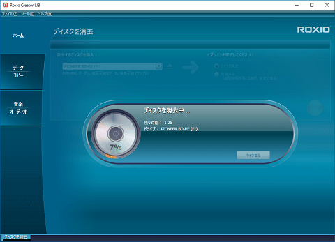 アドバイス消去するディスクの種類や消去方法によって、完了までの時間が異なります。