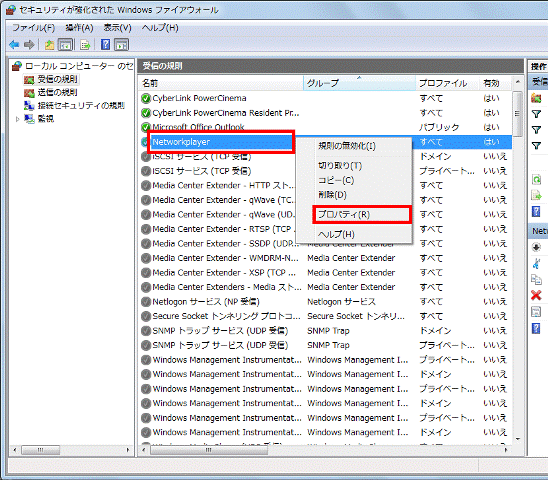 「NetworkPlayer」を右クリックし、表示されるメニューから「プロパティ」をクリックします。