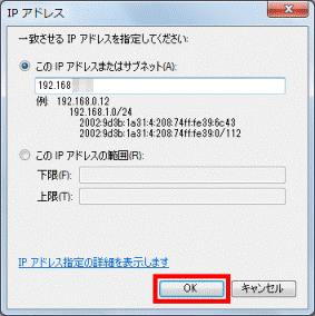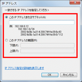 通信を許可したいIPアドレスまたはサブネットを入力します。 - この IP アドレスの範囲内