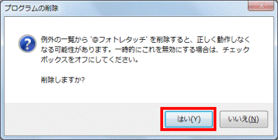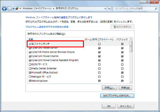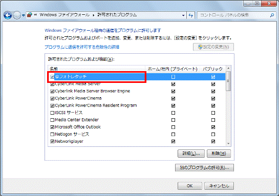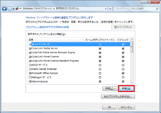 次の手順で、「許可されたプログラム」の一覧からプログラムを削除します。