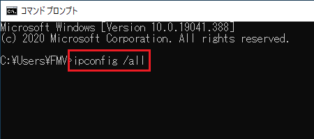 アドバイス「ipconfig」と「/all」の間では、半角で【空白(スペース)】キーを1回押します。