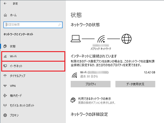 アドバイス無線LANの情報を確認するときは「Wi-Fi」、有線LANの情報を確認するときは「イーサネット」をクリックします。