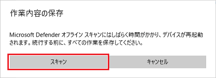 - Windows セキュリティのオフラインスキャンを実行するとパソコンが再起動します。