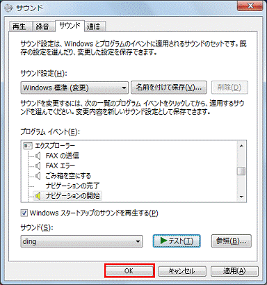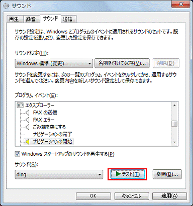 「テスト」ボタンをクリックし、設定した音を確認します。