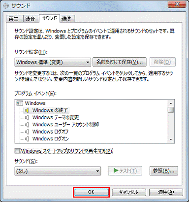 - 「サウンド」欄の「参照」ボタンをクリックします。