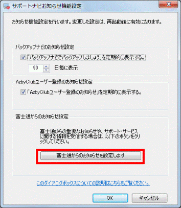 すでにチェックがついている場合、お知らせの受信は設定されています。 - 「富士通からのお知らせを設定します」ボタンが表示されている場合