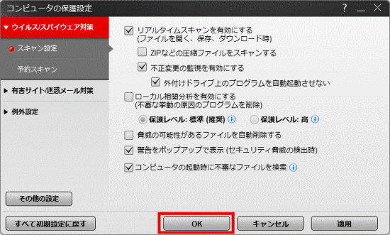 ウイルスバスター クラウドをインストールした直後の状態では、コンピュータの設定に対する不正な変更などを監視する機能は、無効に設定されています。