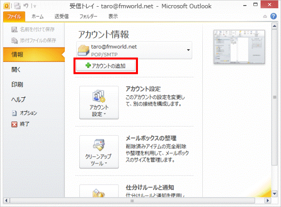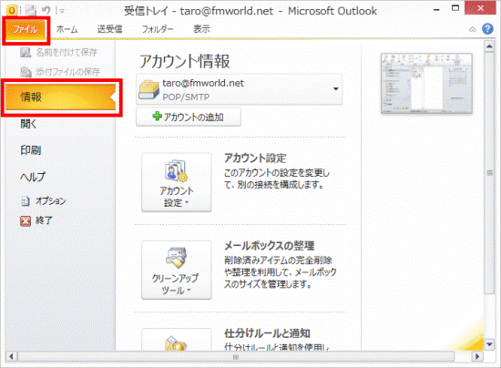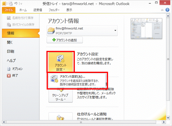 [Outlook 2010] 電子メールアカウントを追加する / 設定を変更する / 削除する方法を教えてください。