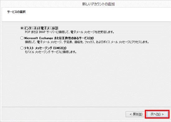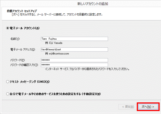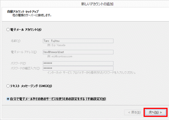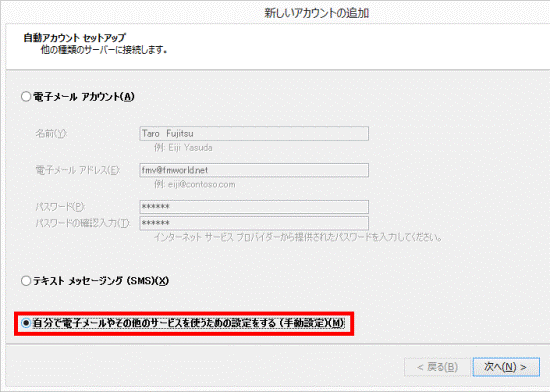 「自分で電子メールやその他のサービスを使うための設定をする(手動設定)」をクリックします。