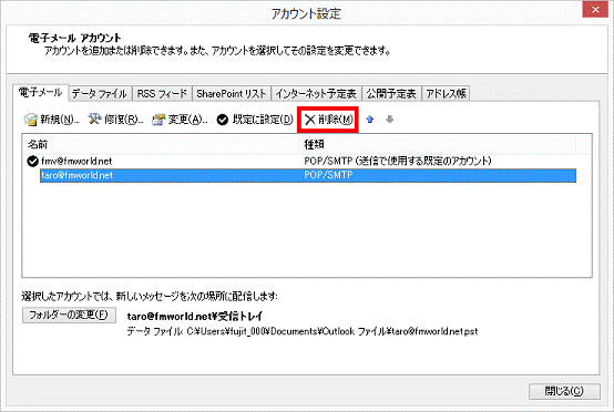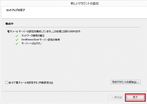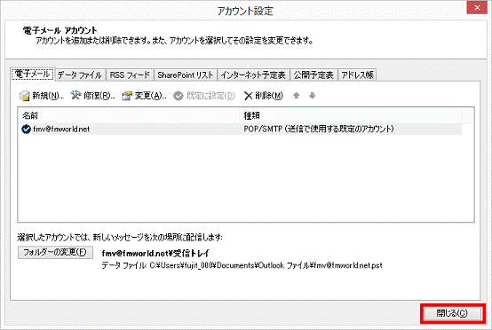 「閉じる」ボタンをクリックし、「アカウント設定」を閉じます。