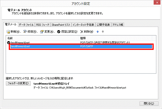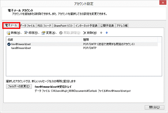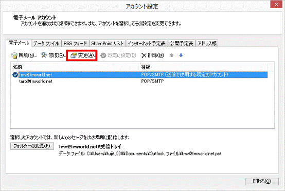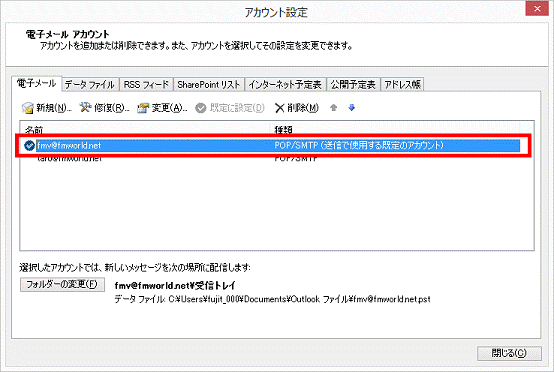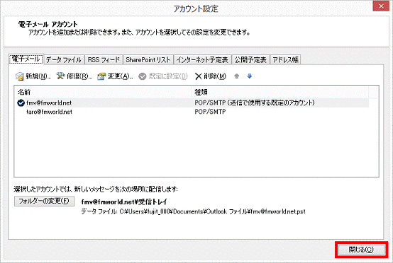 - 「閉じる」ボタンをクリックし、「アカウント設定」を閉じます。