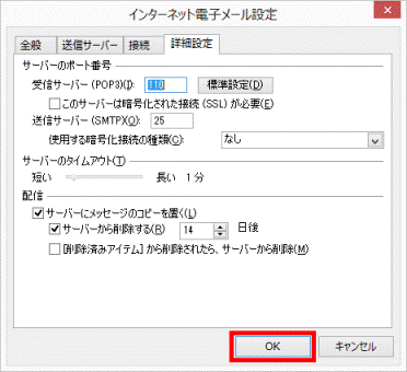 - 設定の変更が終わったら、「OK」ボタンをクリックし、「インターネット電子メール設定」を閉じます。