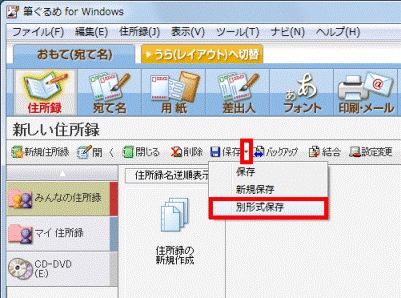 [筆ぐるめ Ver.14〜Ver.16] CSV形式で住所録を保存する方法を教えてください。