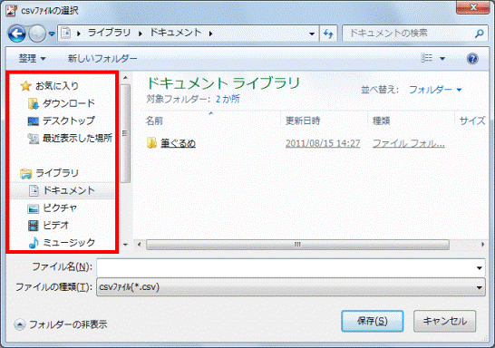 「フォルダーの参照」が表示されていないときは、次の手順に進みます。 - 保存場所の一覧が表示されます。
