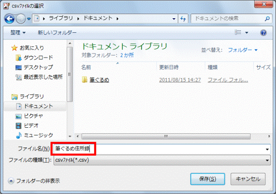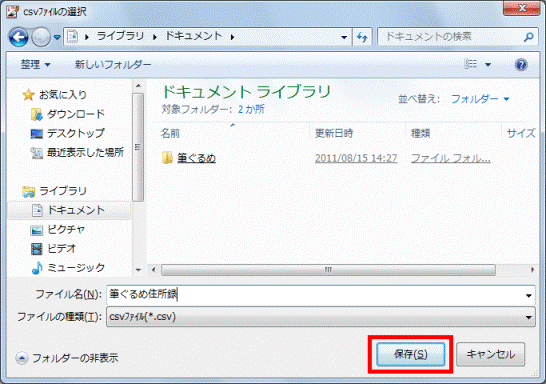 筆ぐるめで作成した住所録を、CSV形式のファイルとして保存する方法は、次のとおりです。