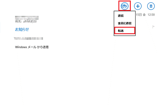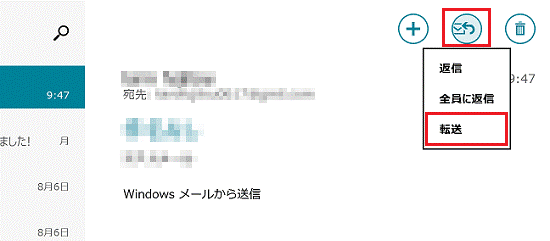 Windows ストア アプリのメールで、受信したメールを転送する方法を教えてください。