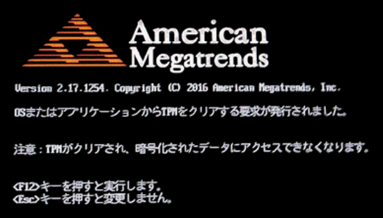 ・OSまたはアプリケーションからTPMをクリアする要求が発行されました。