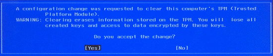 ・A configuration change was requested to clear this computer's TPM(Trusted platform Module).