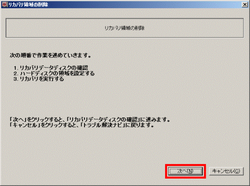 トラブル解決ナビにあるユーティリティを使用して、リカバリ領域を削除します。