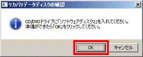 「リカバリデータディスク2」を取り出し、「ソフトウェアディスク2」をセットして、「OK」ボタンをクリックします。