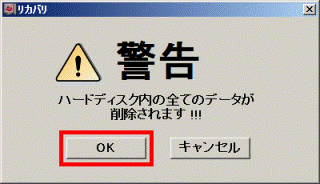 - 「ハードディスク内の全てのデータが削除されます !!!」と表示されます。