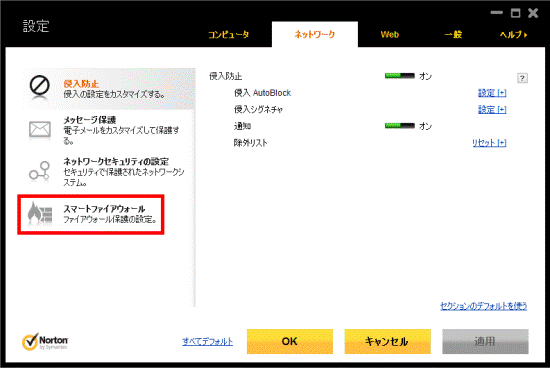 [Norton Internet Security 2012] ファイアウォール機能でアクセスが制御されているプログラムを確認する方法を教えてください。(新しいウィンドウで表示)