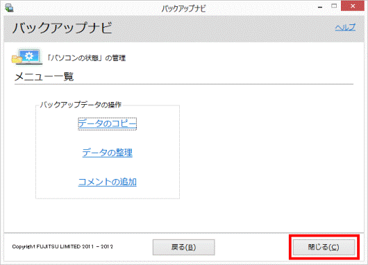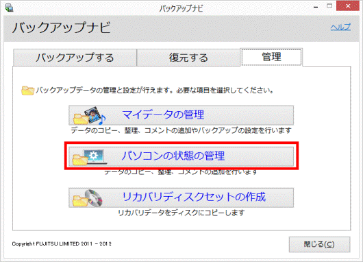[バックアップナビ] 「パソコンの状態」を管理する方法を教えてください。(2012年10月発表モデル〜2015年5月発表モデル)