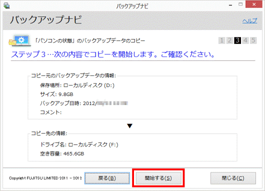 - 「ステップ3…次の内容でコピーを開始します。」と表示されます。