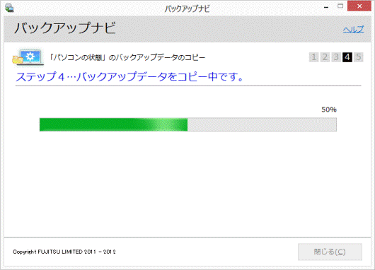 - 「ステップ4…バックアップデータをコピー中です。」と表示されます。