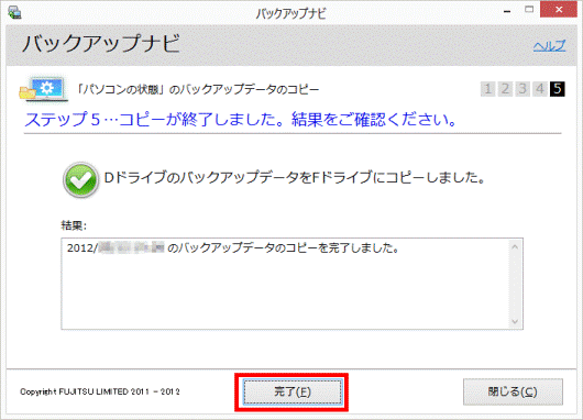 - 「ステップ5…コピーが終了しました。」と表示されます。