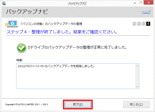 - 「ステップ4…整理が終了しました。」と表示されます。