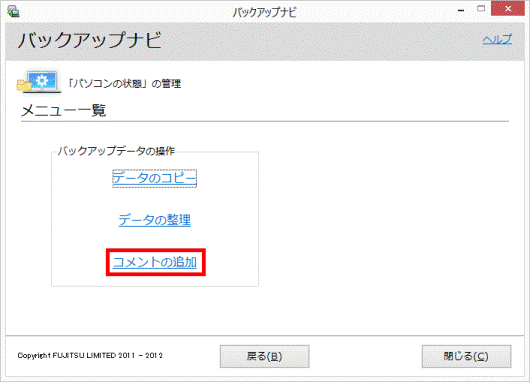 次の手順で、パソコンの状態のバックアップデータにコメントを追加します。