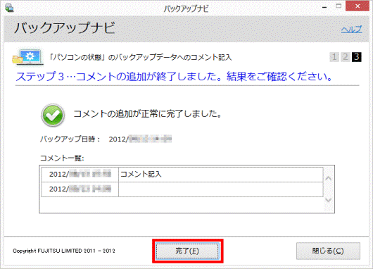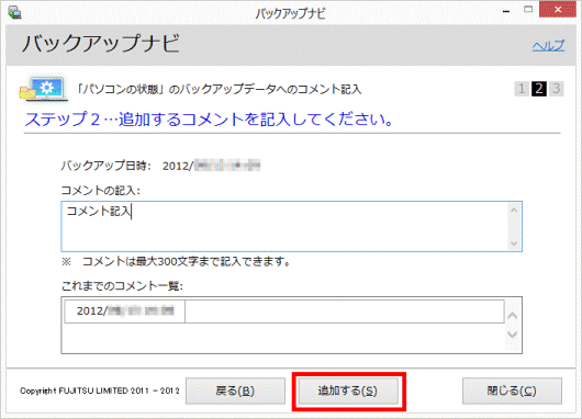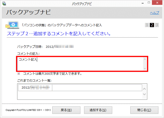 1つのバックアップデータにつき、100回までコメントを追加できます。