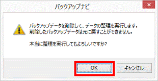 - 「バックアップデータを削除して、データの整理を実行します。」と表示されます。