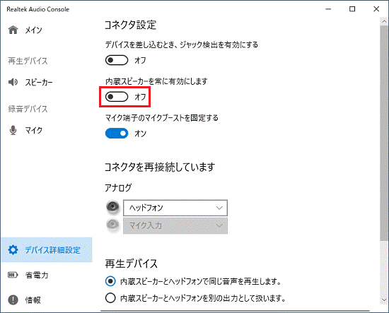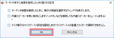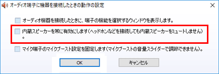 (「内蔵スピーカーを常に有効にします(ヘッドホンなどを接続しても内蔵スピーカーをミュートしません)。」が表示された場合)