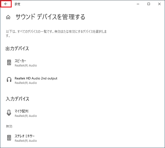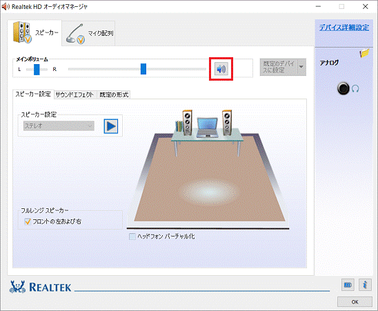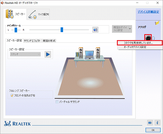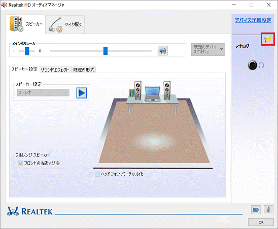 - 「Realtek HD オーディオマネージャ」に戻ります。